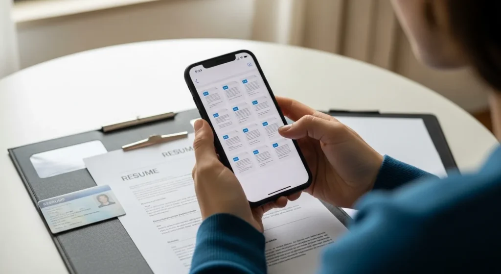 No Brasil, a situação mais comum é o recrutador pedir apenas identificação básica no primeiro contato e deixar comprovantes, registros e certificados para depois. Ainda assim, chegar sem nada, com arquivo corrompido ou sem acesso ao próprio celular pode virar um problema simples que seria fácil evitar.